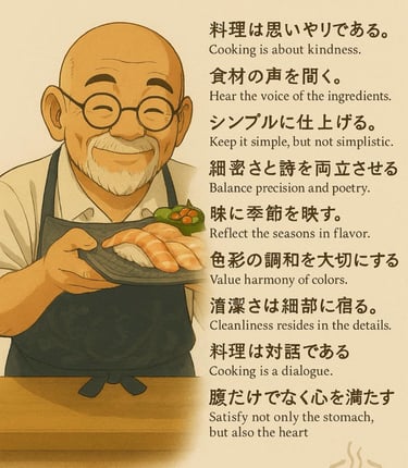 His omakase philosophy blends improvisation, seasonal storytelling, and deep emotional connection.