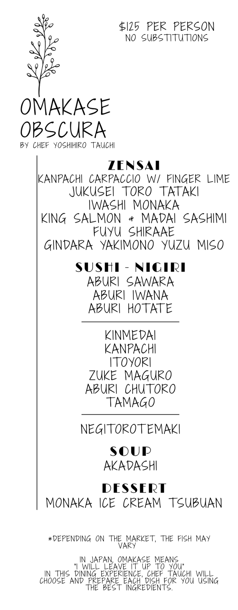 Book your intimate sushi experience with chef Yoshi at Omakase Obscura today.